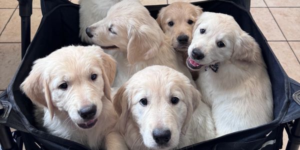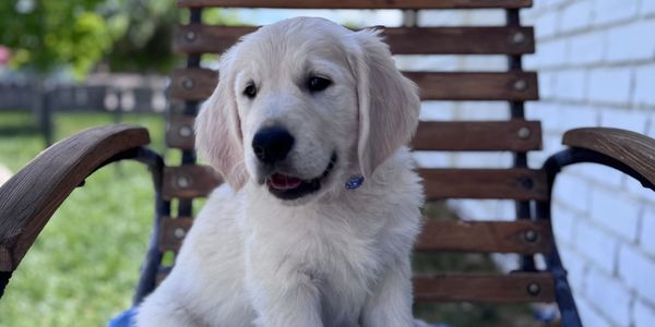 Meet Cedar! The only boy in this litter of 6 golden retriever puppies. This little gentleman is the most playful of all his siblings. He loves bunny hopping around and teasing his sisters. His favorite to play with is our 8 yearly Akita/Husky. He is the 3rd biggest among his sisters and has the lightest coloring. He already loves belly rubs and kicks his leg out when you scratch. Cedar would be a delightful addition to any loving home.